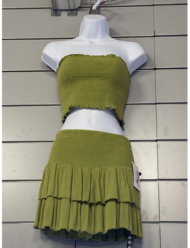J119 Jupe short uni à 2 volants taille smock TU34-44
