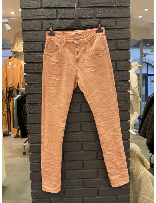 P399 Jean effet froissée délavé 4 boutons 2 poches