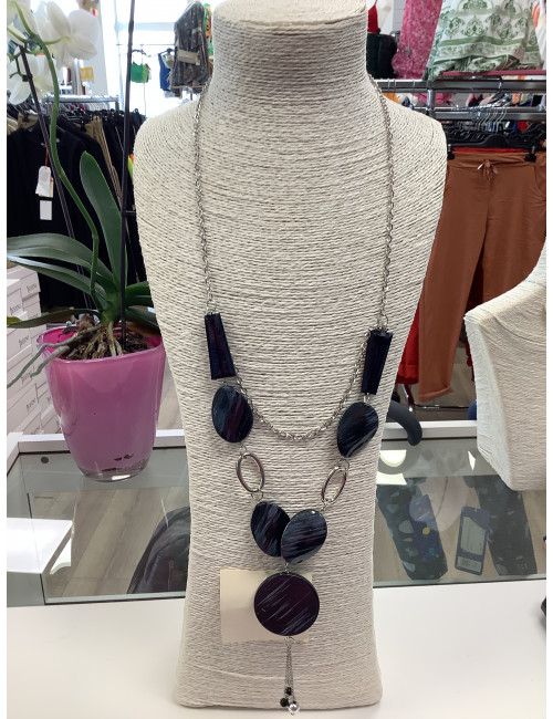 X200 Collier chaine avec perle plate effet marbré