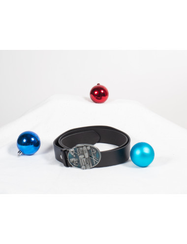 Ceinture en simili cuir et grosse boucle à motif style américaine. Tendance et original pour homme ou femme.