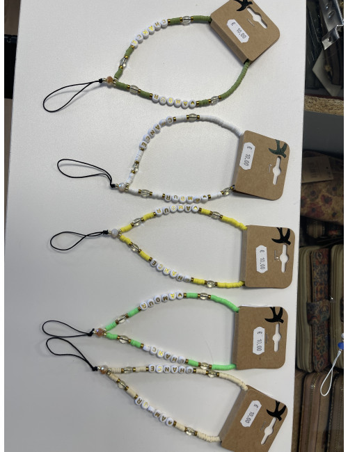 Z292 Attache téléphone "amour" "chance" perle plate