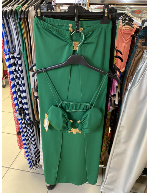 N103 Ensemble crop top jupe avec bijoux doré lisse T.34-42