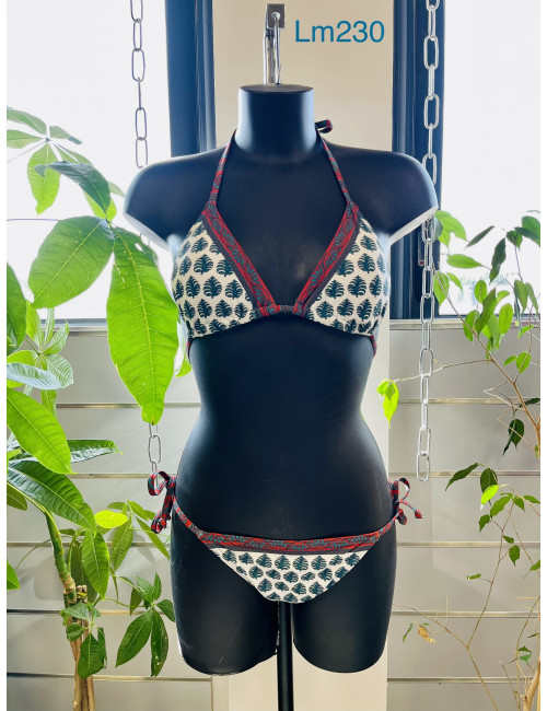 LM230 Bikini lagon bleu triangle mousse tiki blanc vert
