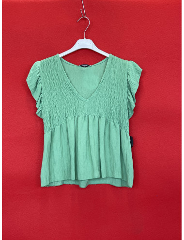 TF477 Top effet smock col v style gaz de coton TU34-46