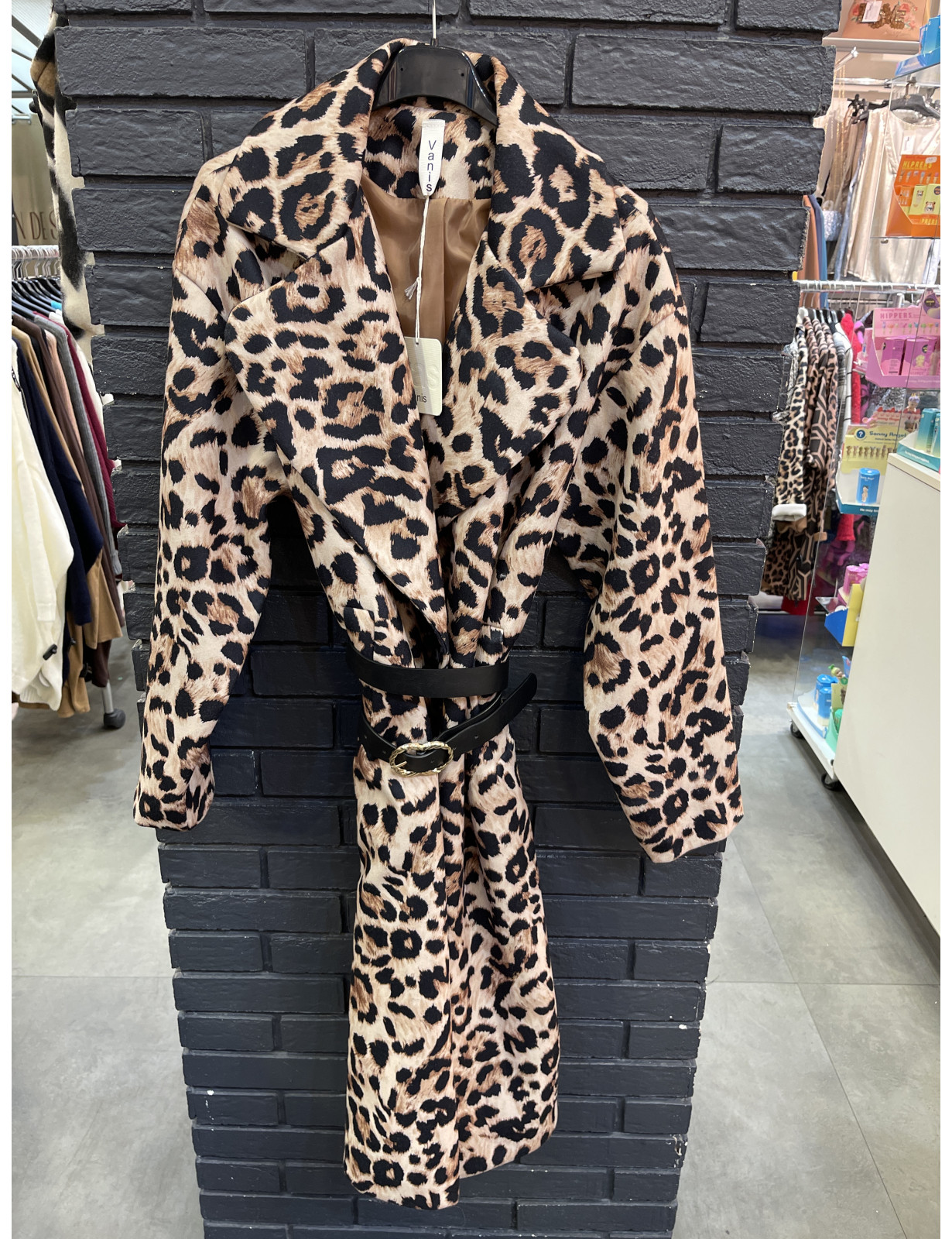 V840 Manteau femme imprimé léopard avec ceinture TU 38-48