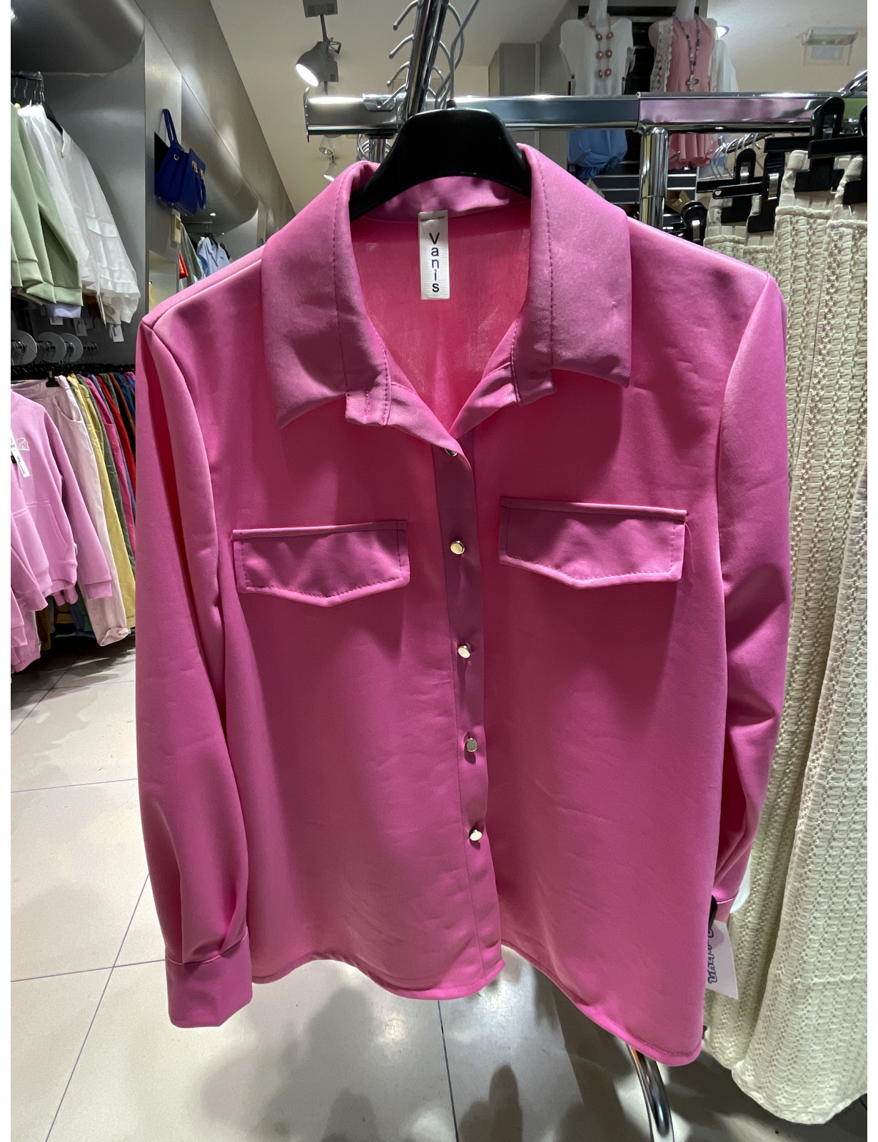 TF749 Chemise boutons ronds dorés fausses poches TU34-42