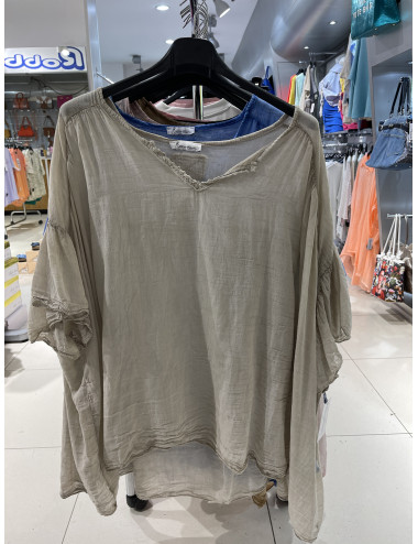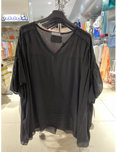 TF915 Top blouse voile col v gaufré mousseline TU46-64