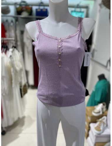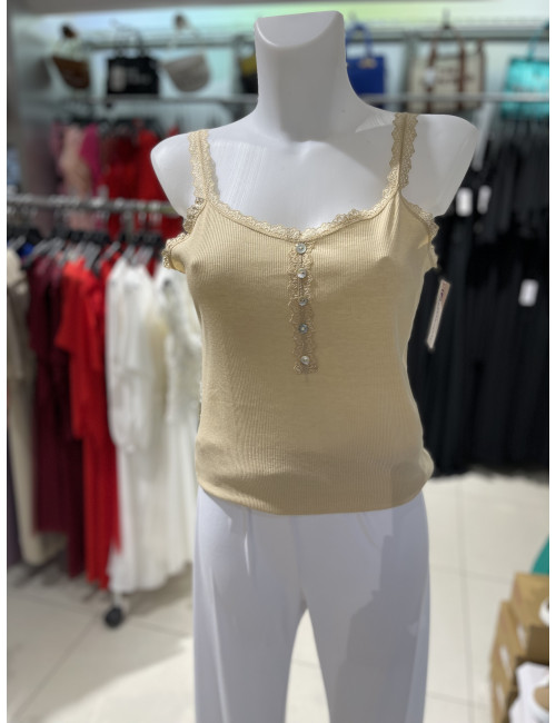 TF866 Débardeur cotelé dentelle encolure 5 boutons