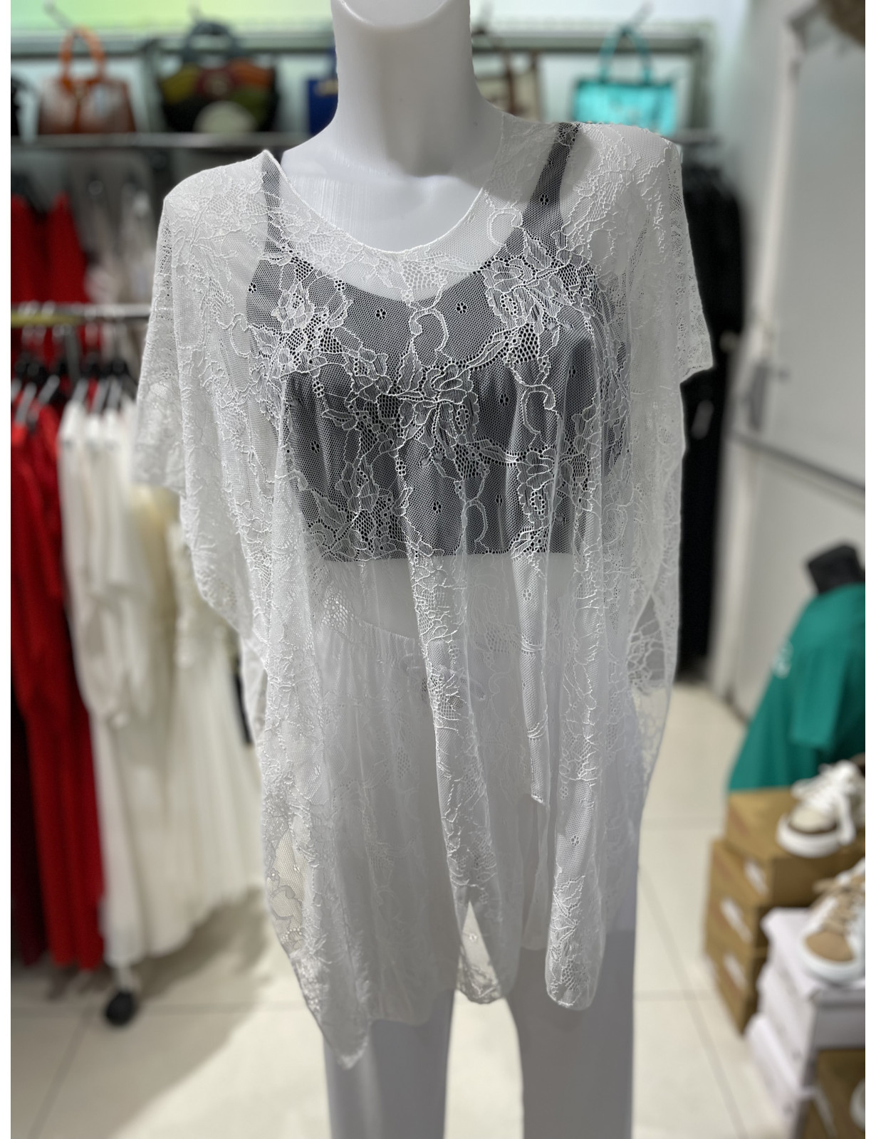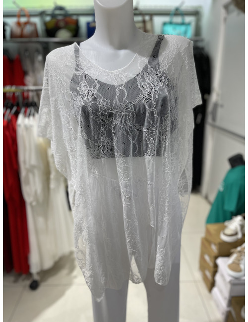 TF871 Haut en dentelle détail fleuri style poncho TU34-64