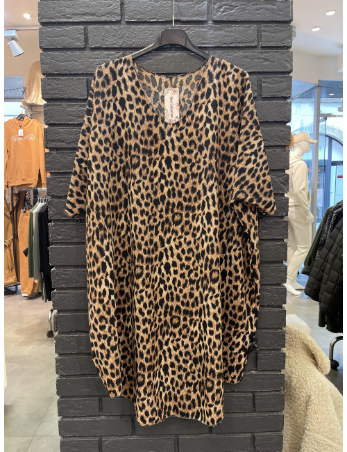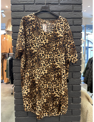 R843 Robe style tunique col v strass manches courtes TU34-46