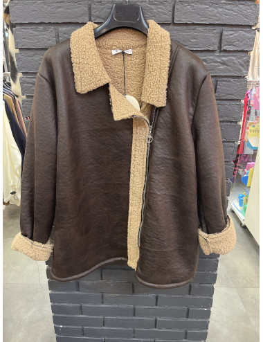 V773 Blouson style cuir effet mouton zippé côté TU 38-48
